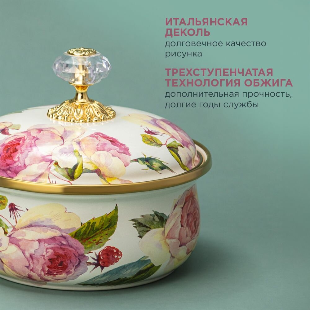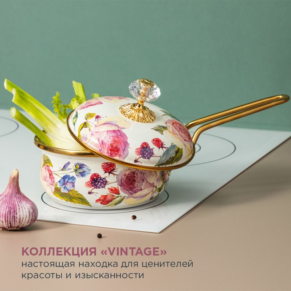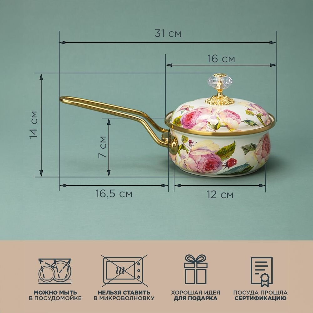 Кастрюля эмалированная Agness с крышкой, серия ROYAL GARDEN 2,1 л, диаметр 16 см, Agness 950-081