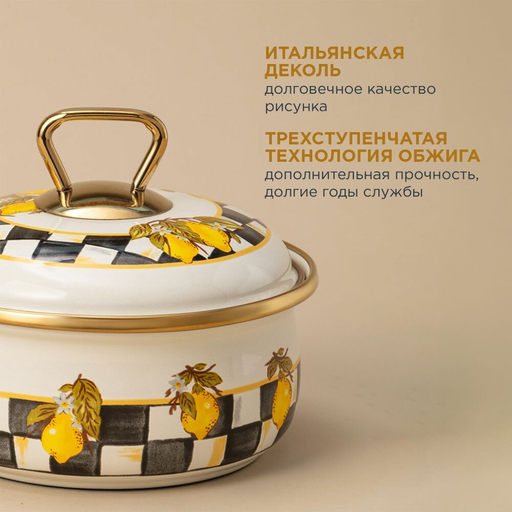 Кастрюля эмалированная с крышкой Family Farm 3,6 л Размер: 22*13 см