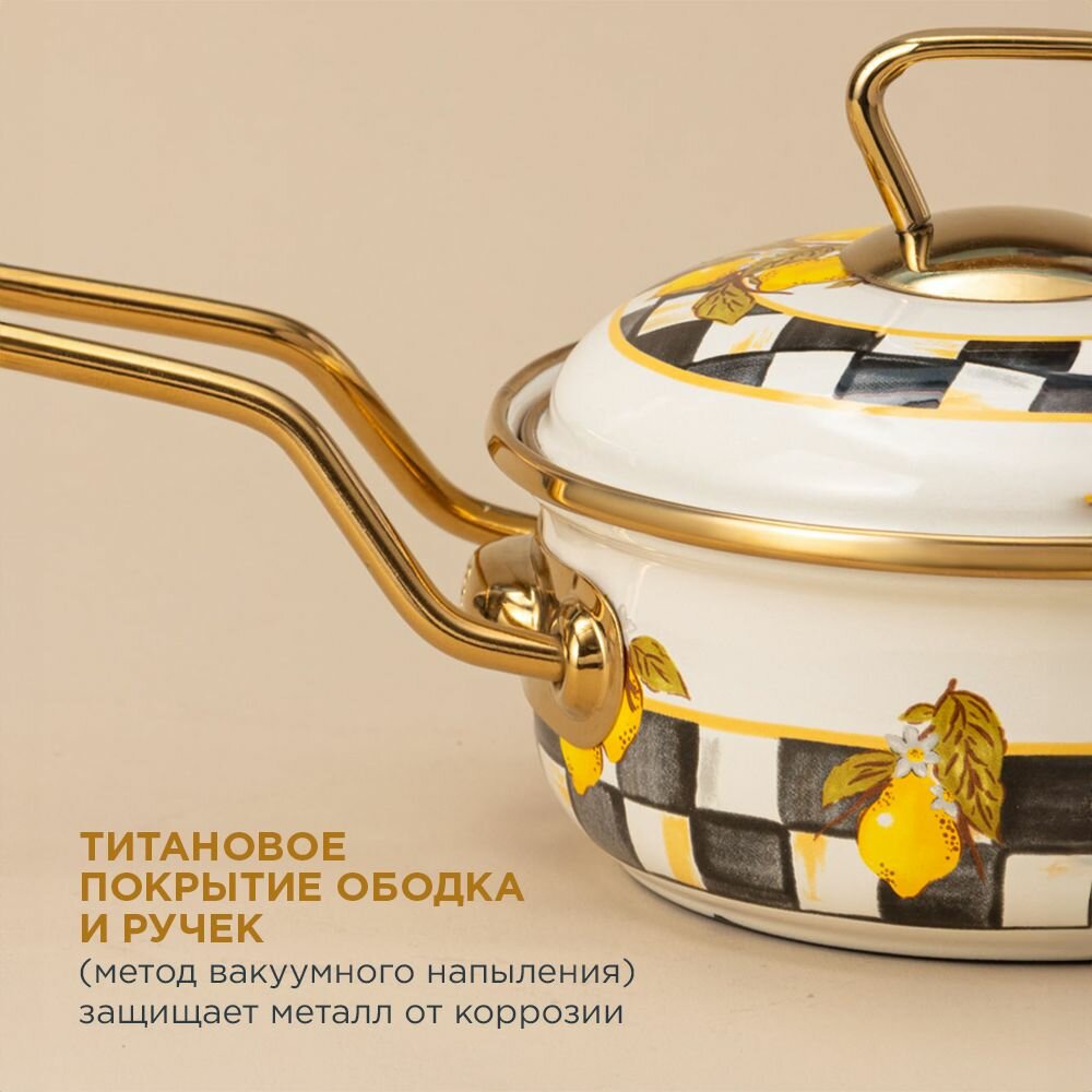 Ковш agness эмалированный, серия лимон 14см / 0,9л d 14 см длина 31см подходит для индукцион
