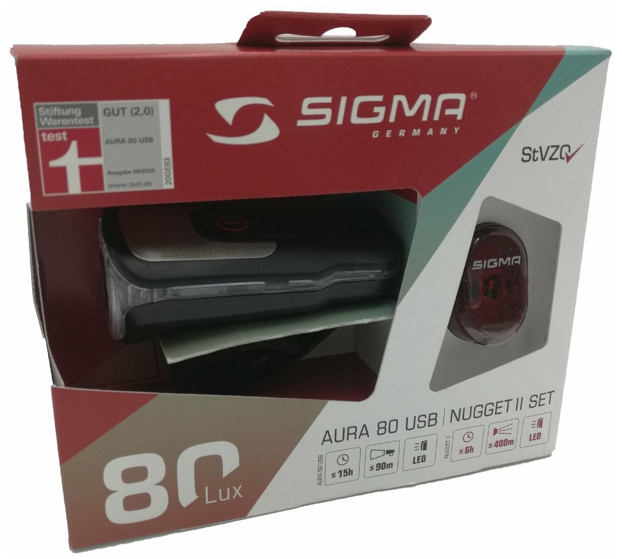 Комплект освещения SIGMA SPORT AURA 80 USB / NUGGET II с кабелем USB