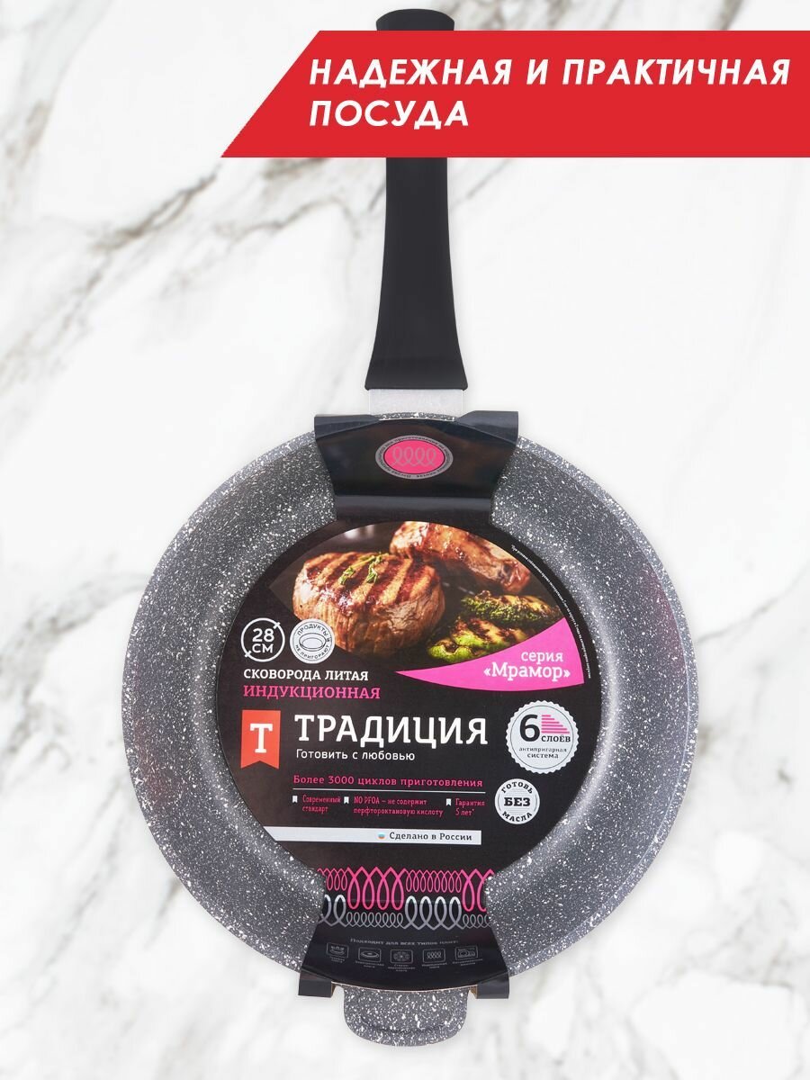 Сковорода Традиция Мрамор индукция ТМ2281И 28 см, антипригарное покрытие, литая информация: