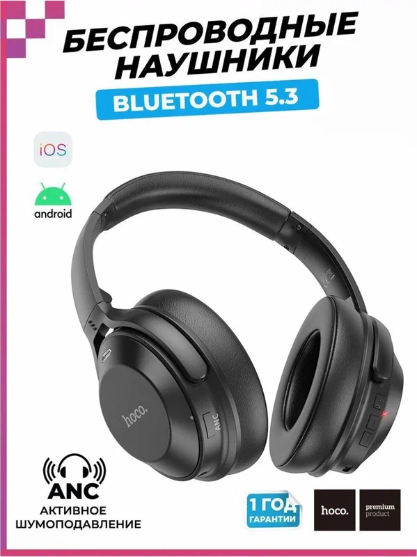 Беспроводные наушники HOCO W37 с Шумоподавлением ANC HiFi с микрофоном черный 2 440 ₽