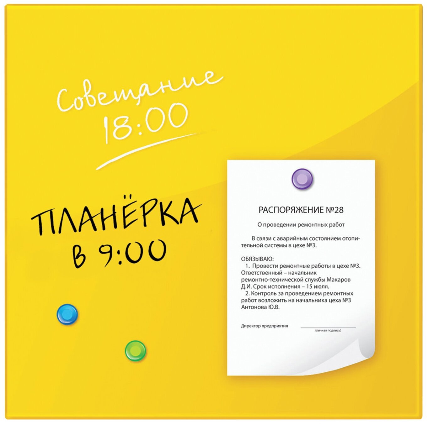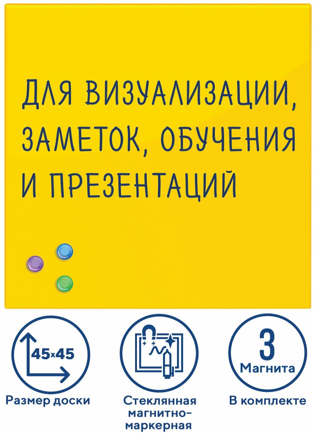 Доска магнитно-маркерная стеклянная 45х45 см, 3 магнита, желтая, BRAUBERG, 236739 информация: