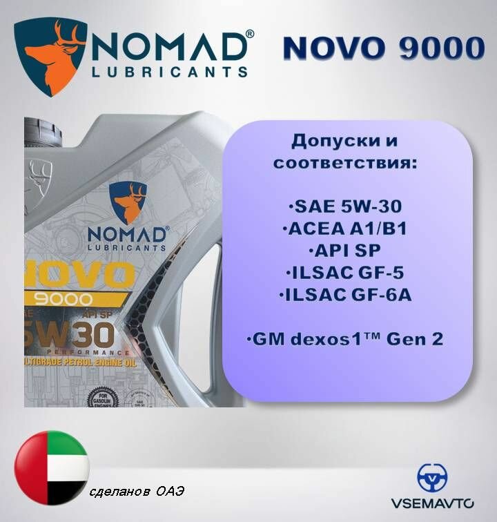 Масло моторное NOMAD NOVO 9000 5W30 GF-6A;RC;SP A1/B1 синт. 4л информация: