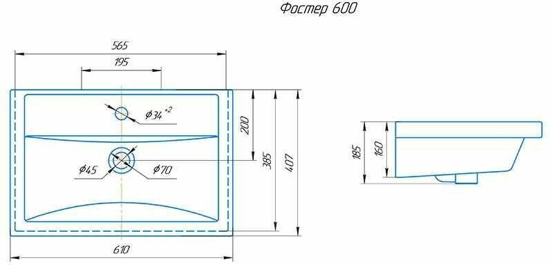 Тумба подвесная с 2 ящиками Grossman Форта-70 см под раковину Фостер-70