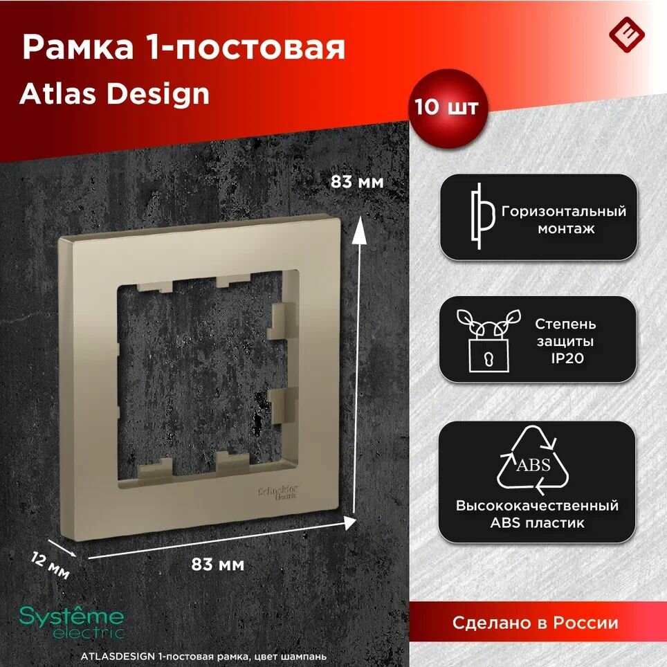 Рамка электроустановочная Systeme Electric (Schneider Electric) AtlasDesign, 1 пост, шампань, ATN000501, 3 шт.
