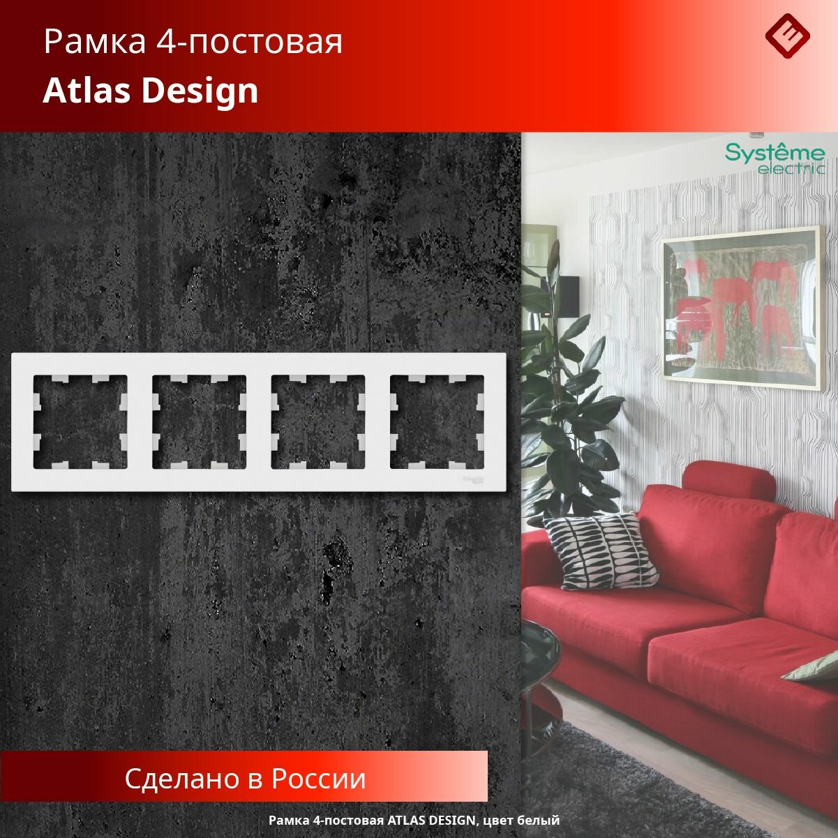 Рамка для розеток и выключателей четырехпостовая (Белый), Schneider Electric AtlasDesign (комплект 5шт) информация: