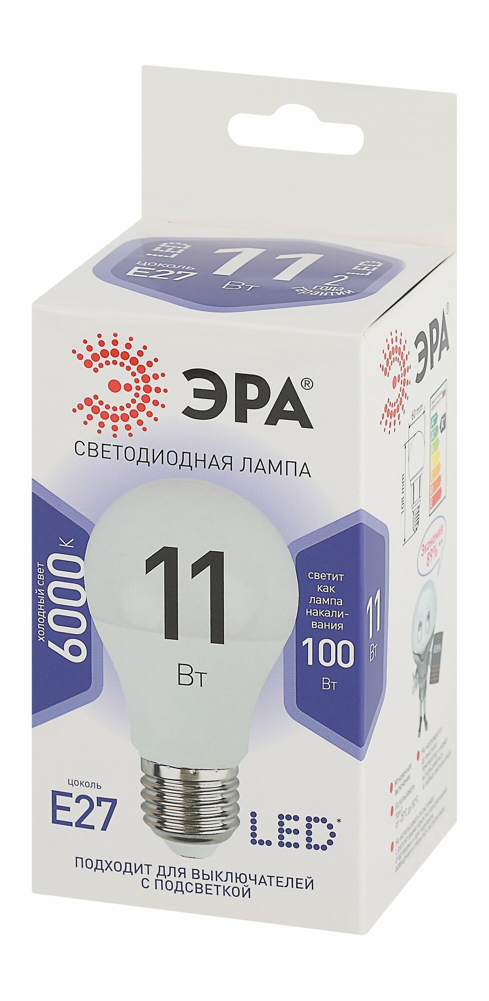 Лампочка светодиодная ЭРА LED A60-11W-860-E27 6000K груша 11 Вт информация: