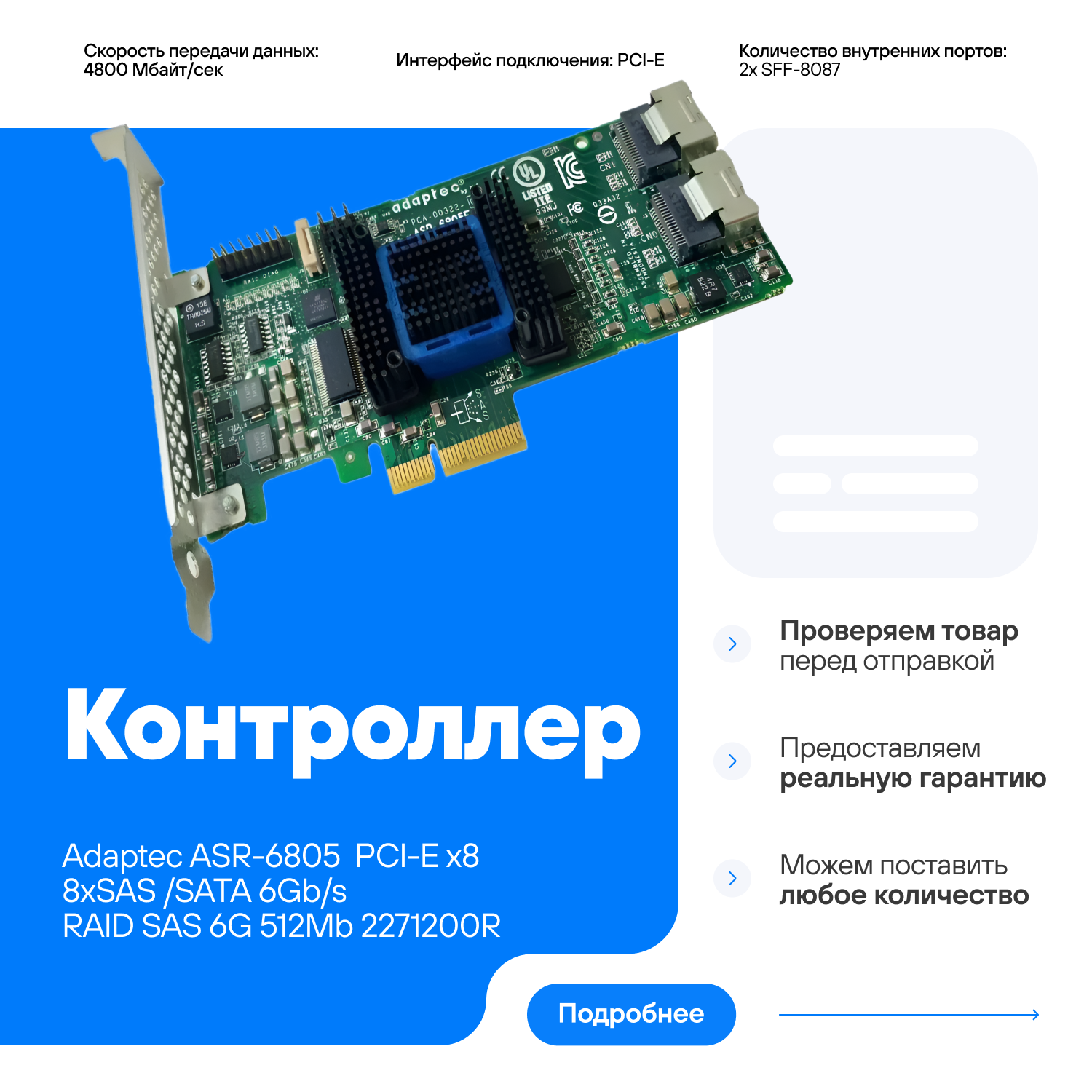 Контроллер Adaptec ASR-6805 PCI-E8x 512Mb 41 660 ₽