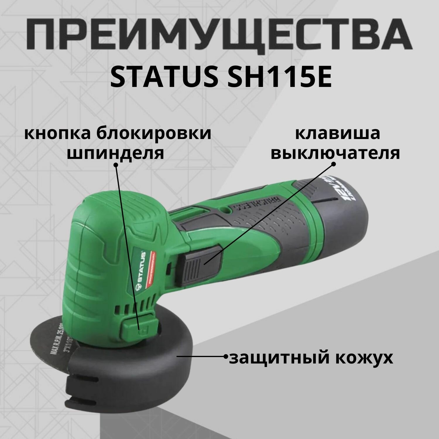Шлифовальная машина угловая STATUS SH115E аккумуляторная (12В АКБ*2Ah+з.у) информация: