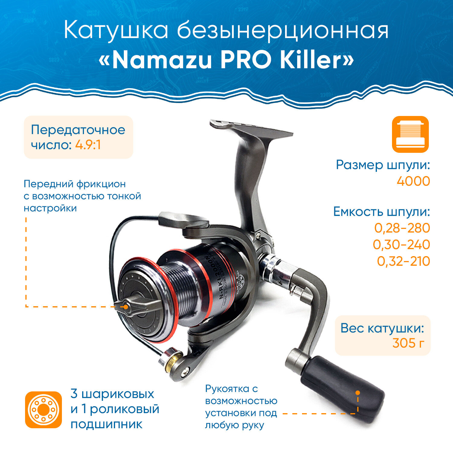 Катушка безынерционная Namazu PRO Killer NEW KL4000, 3+1 подш., метал. шпуля информация: