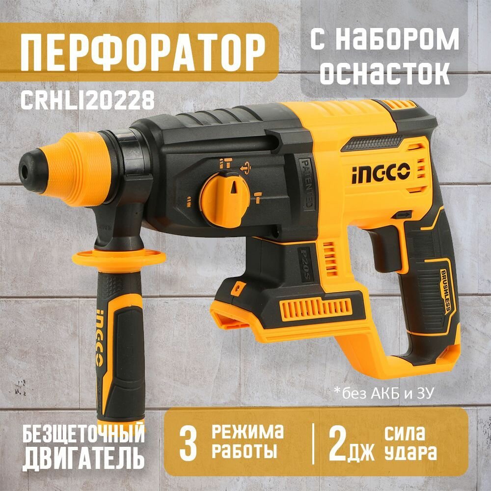 Аккумуляторный перфоратор INGCO CRHLI20228 INDUSTRIAL без АКБ и ЗУ электроинструмент, подарок на день рождения мужчине, любимому, папе, дедушке, парню
