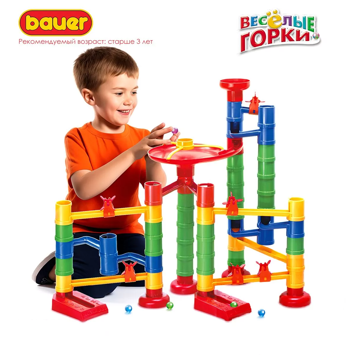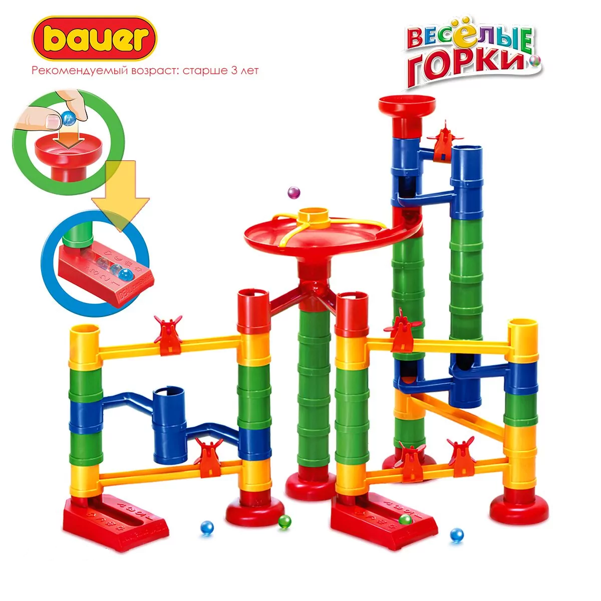 Развивающий конструктор Bauer "Веселые горки с кубиками", для детей от3-х лет, 108 деталей, STEM