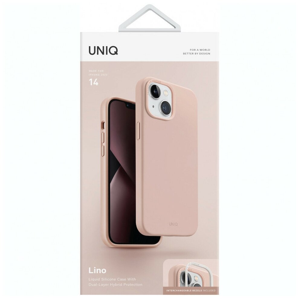 10 цен на Uniq силиконовый чехол для iPhone 14, LINO Pink (со сменными рамками)