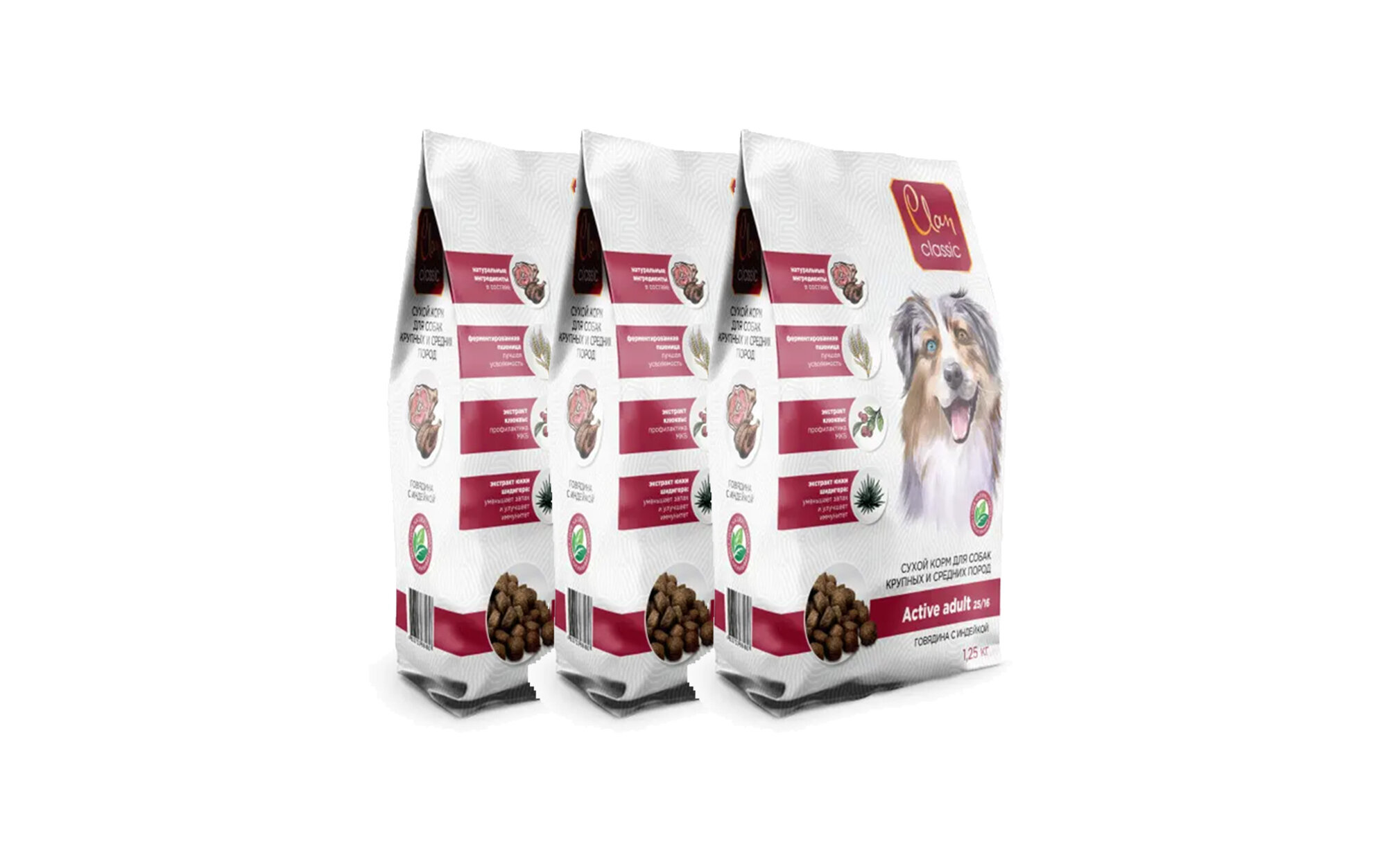 Clan Classic Active 25/16 сухой корм для активных взрослых собак крупных и средних пород с говядиной и индейкой - 1,25 кг х 3 шт. информация: