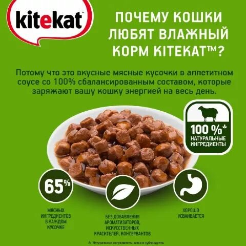 Корм влажный Kitekat соус для взрослых кошек с ягненком, 85г x 28 шт информация: