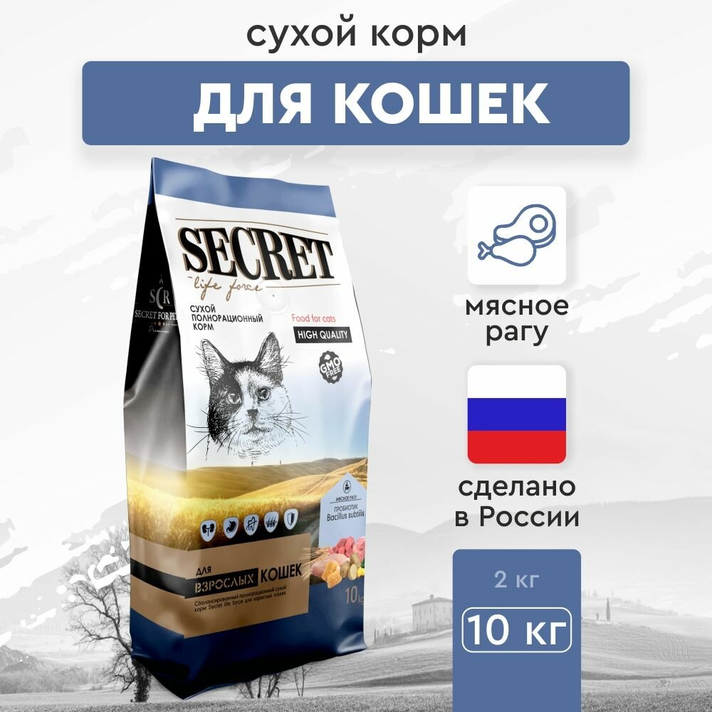 Корм сухой Secret For Pets Secret Life Forse для кошек мясное рагу, 10 кг 3 830 ₽