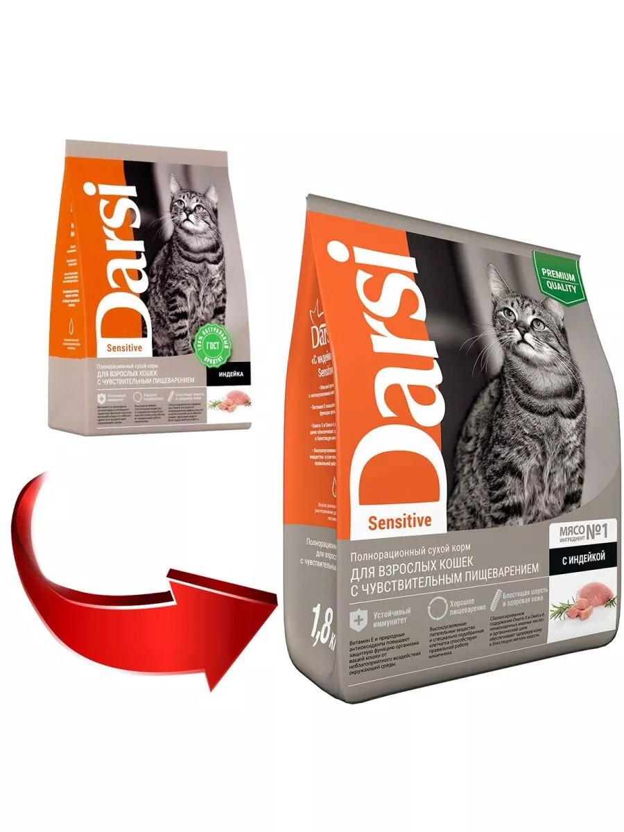 Сухой корм DARSI Sensitive для кошек с чувствительным пищеварением, с индейкой, 1,8кг
