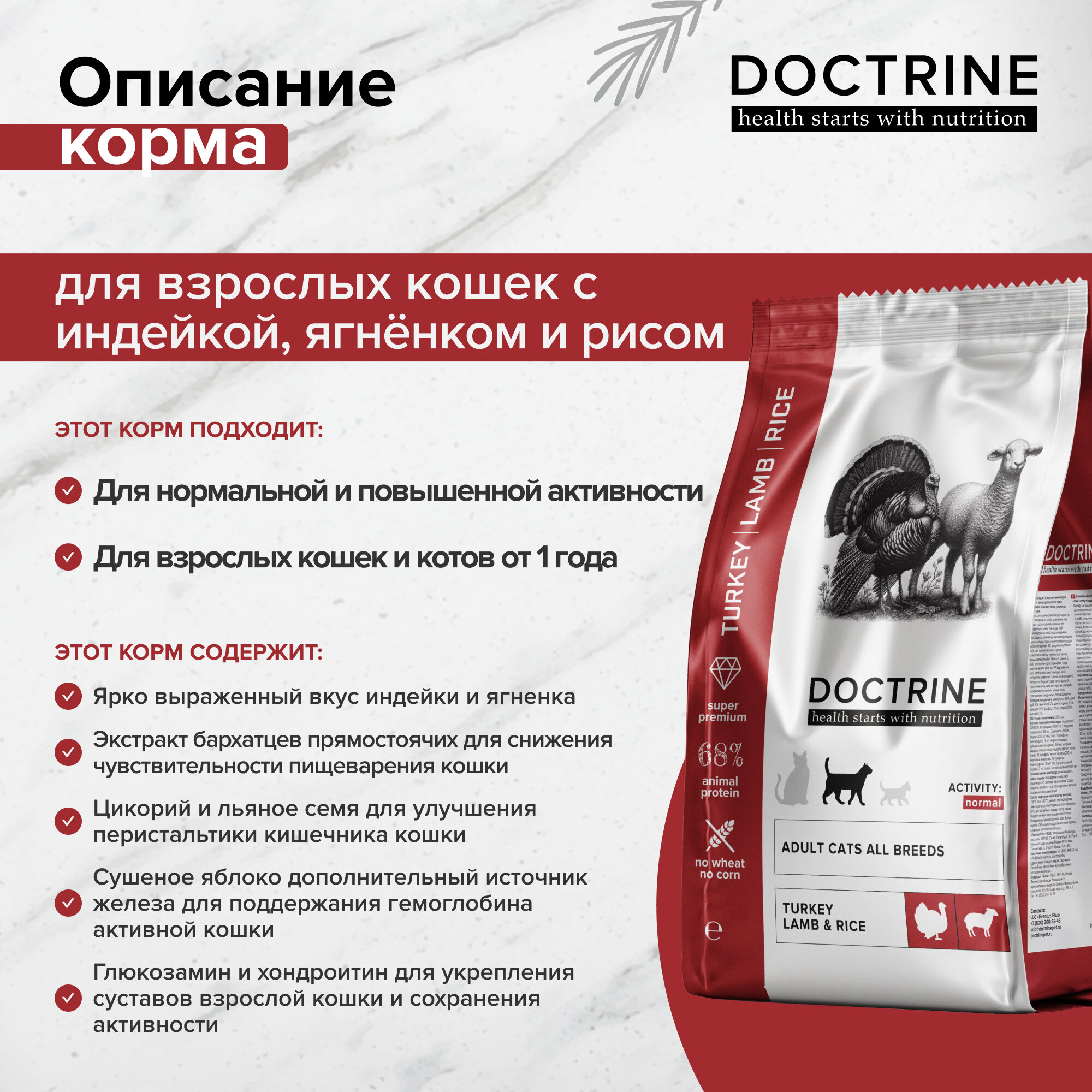 DOCTRINE - Сухой корм для кошек с индейкой и ягненком, 10 кг 8 280 ₽
