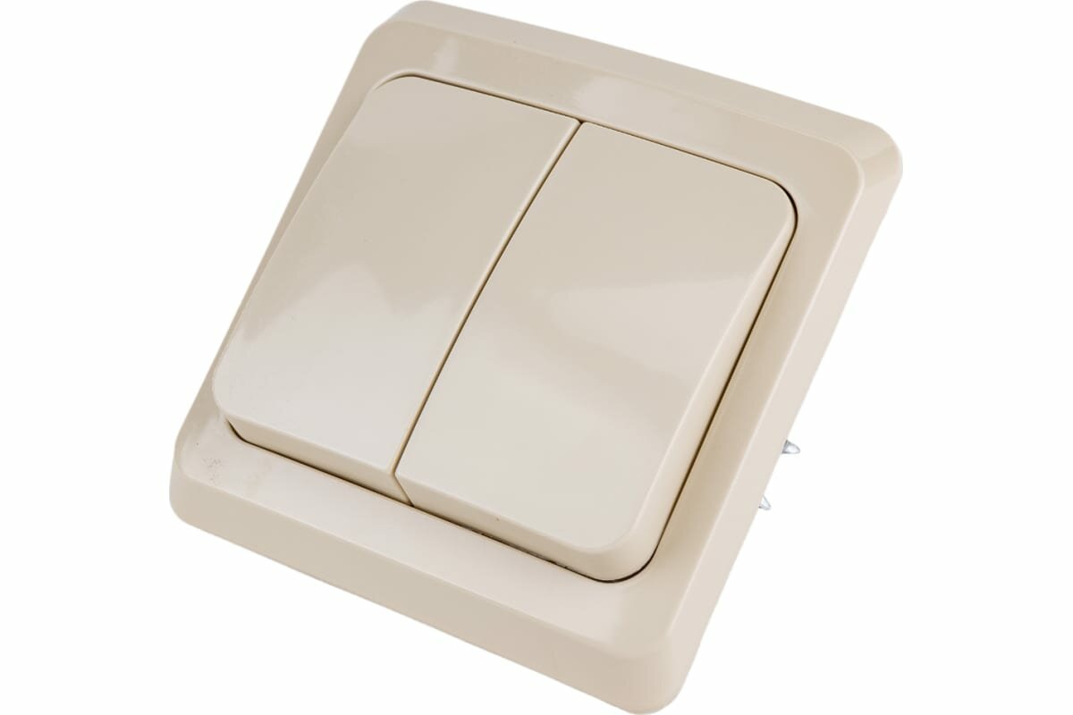 Выключатель двухклавишный Bylectrica Пралеска, брызгозащищенный, открытой установки, 6А, 250В, белый. А5 6-224.