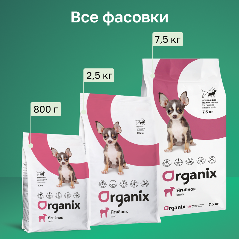 Сухой корм Organix для щенков малых пород с ягненком, 800 гр. информация: