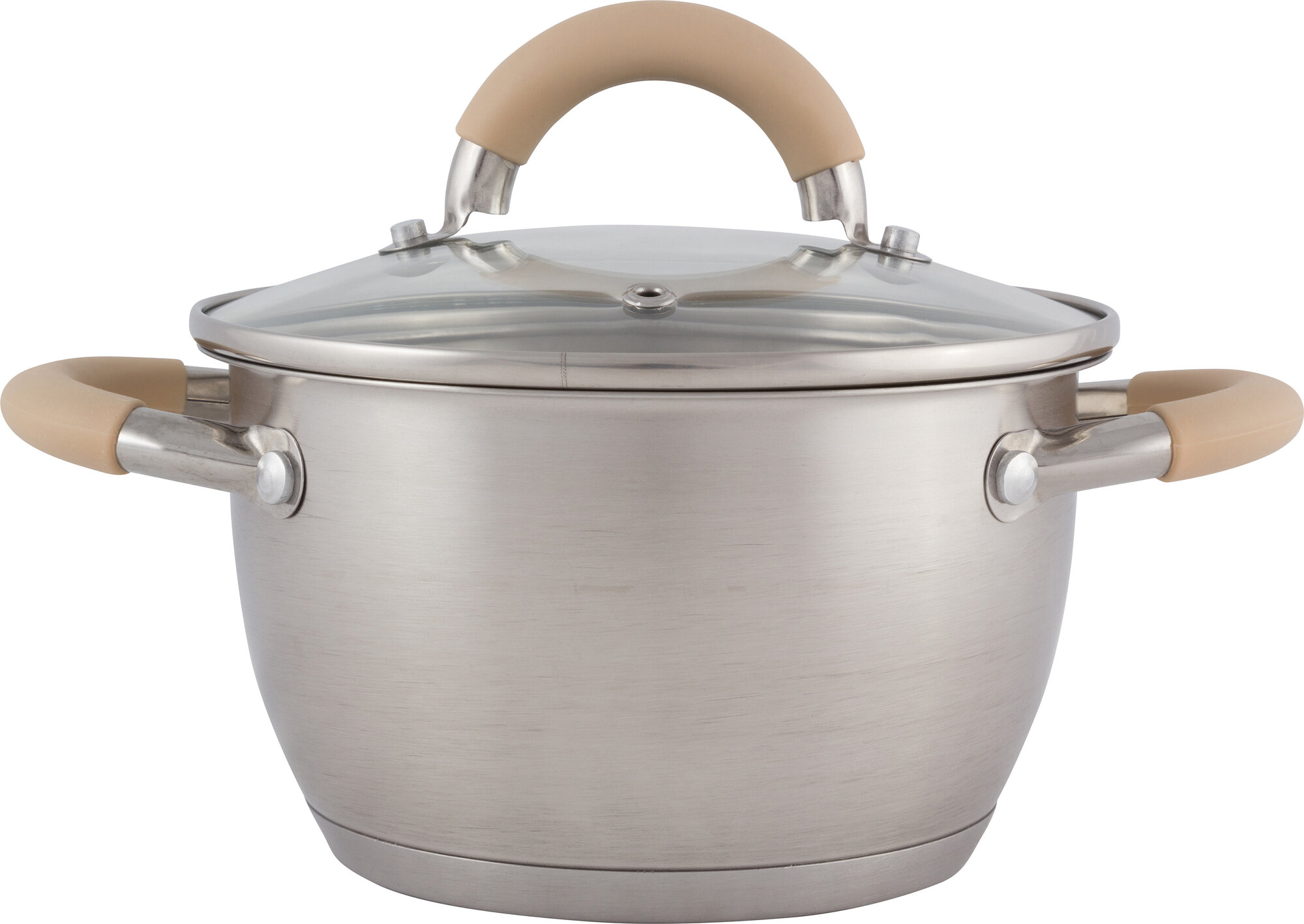 Отзывы на Кастрюля Fortuna, объем 1,8 л, из нержавеющей стали с крышкой, матовый корпус, ручки с силиконом