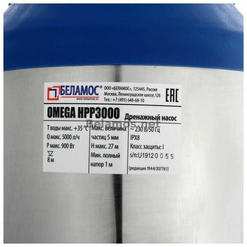 10 цен на Насос дренажный Belamos Omega НРР3000, 83 л/мин, H-27 м, каб. 10 м