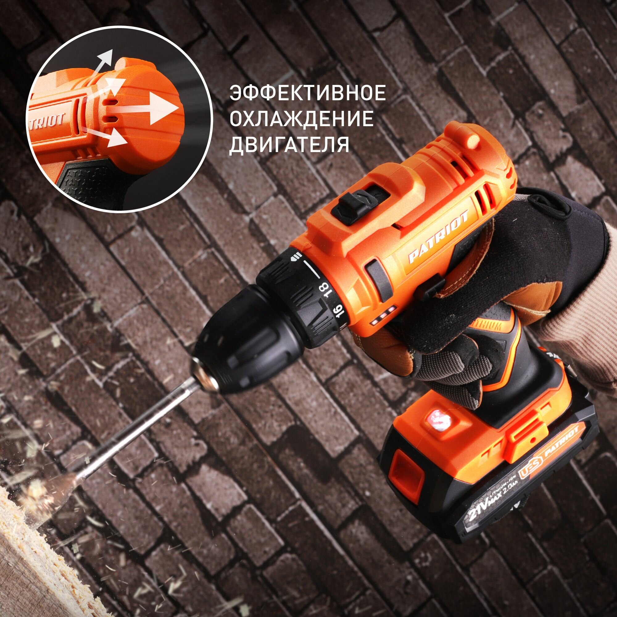 Дрель -шуруповерт аккумуляторная 21V Li-Ion; 2акк; кейс; быстросъёмный патрон BR 189 UES PATRIOT 180301549