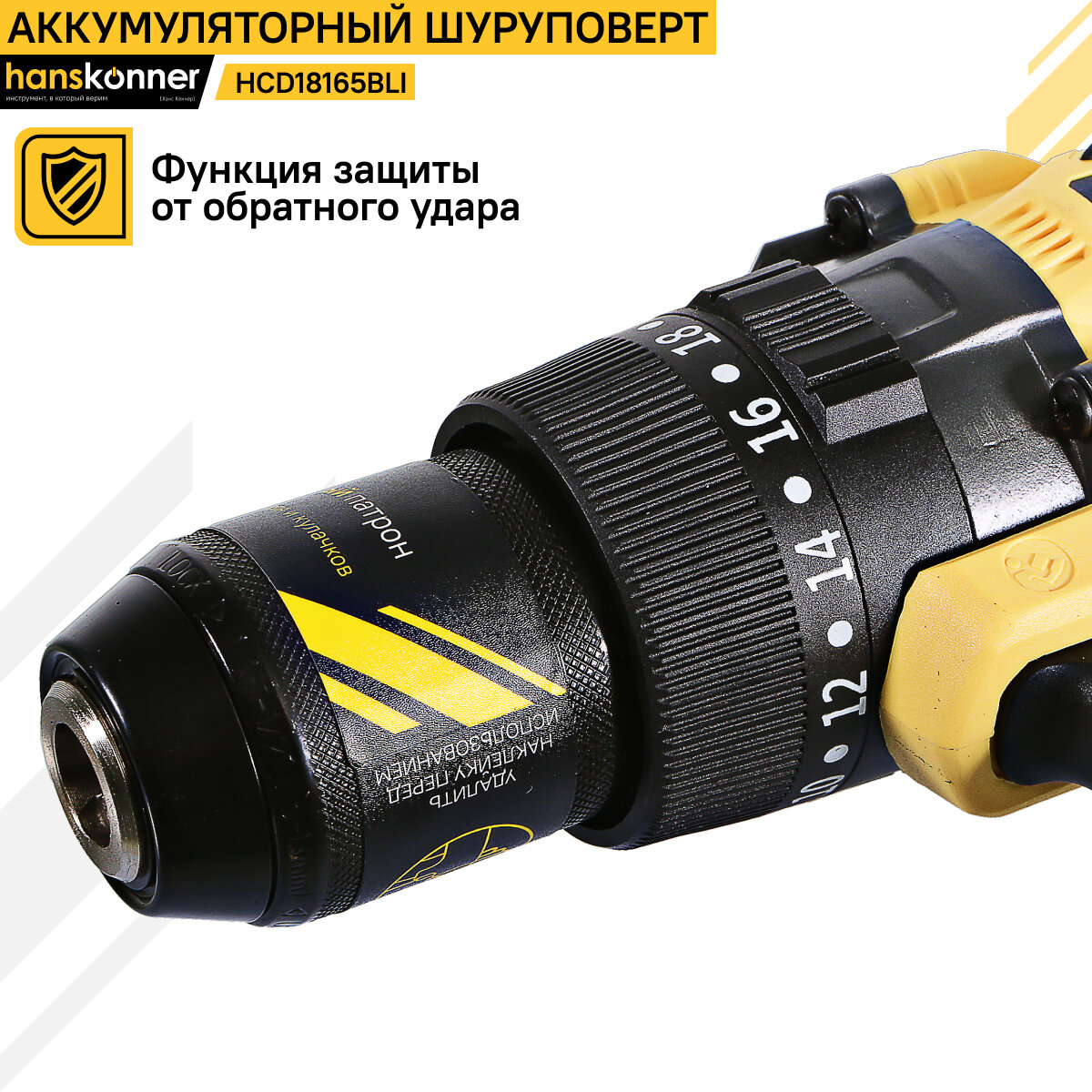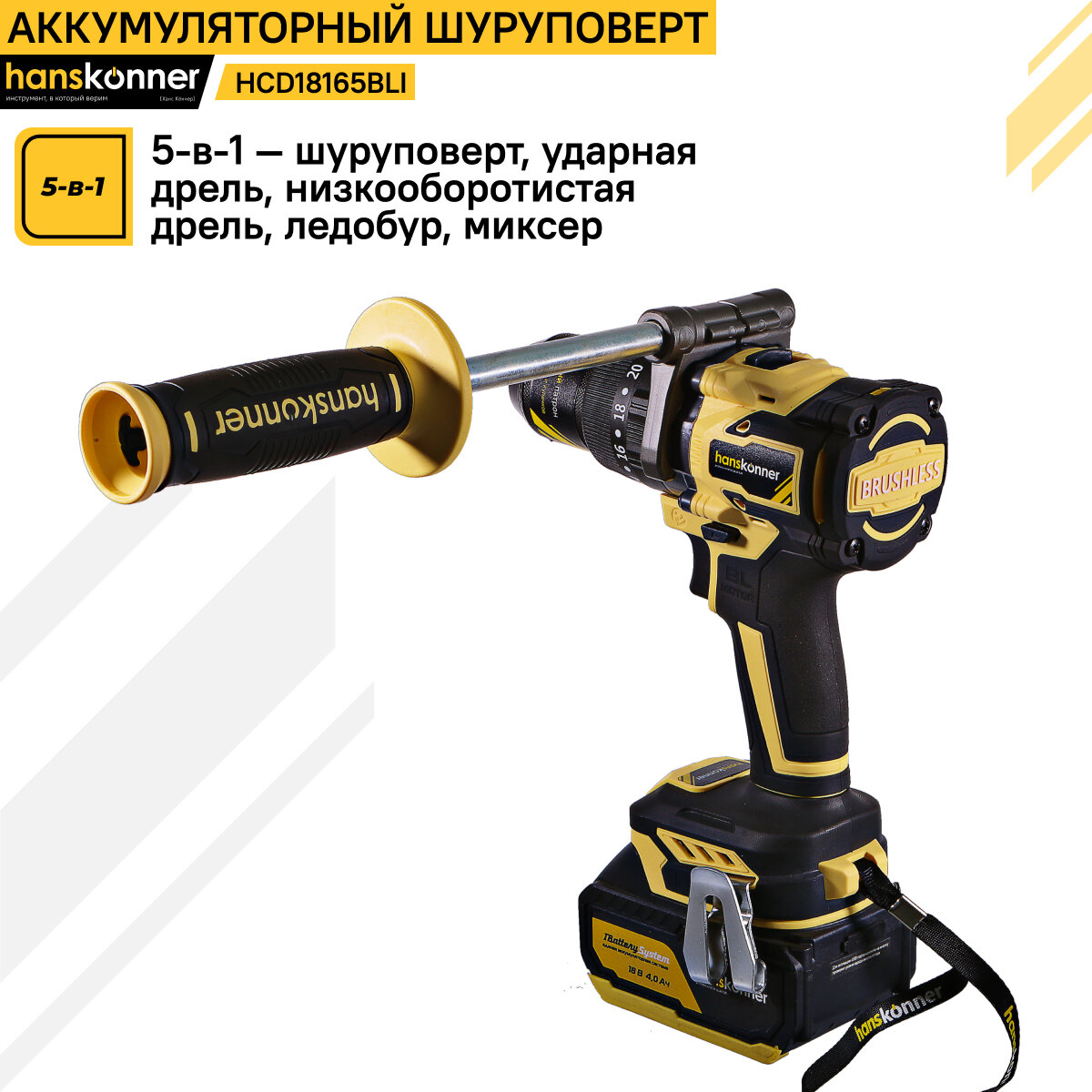 Аккумуляторный шуруповерт Hanskonner HCD18165BLI 1BatterySystem информация: