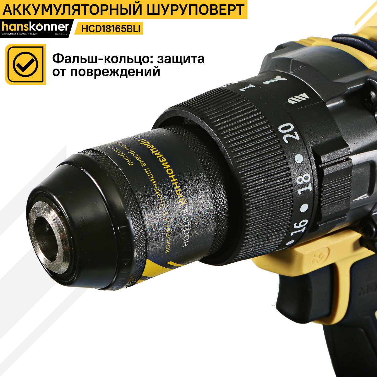Шуруповерт аккумуляторный Hanskonner (HCD18165BLI), кейс 24 830 ₽