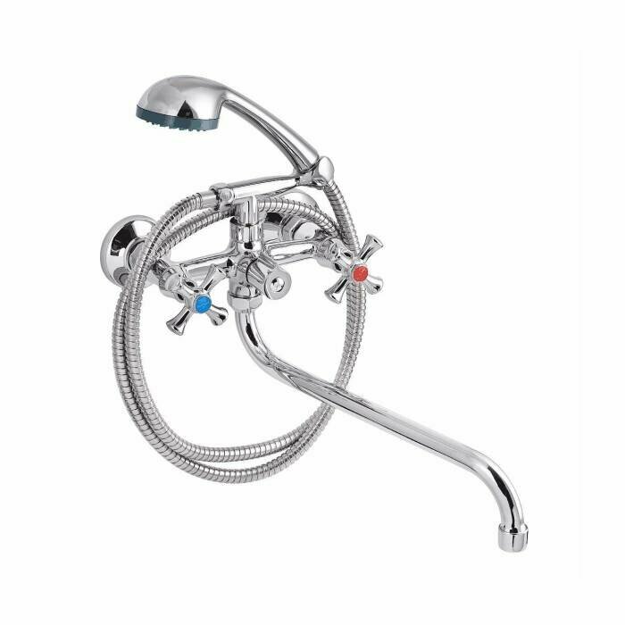 | Комплектация | Корпус из латуни (литой) — 1 шт. Узел излива в сборе — 1 шт. Вентильная головка в сборе (с керамическими пластинами) — 2 шт. Маховики в сборе Крест металлические Арт.75 — 2 шт. Импортный эксцентрик с отражателем ЕВРО — 2 шт. Душевой шланг — 1 шт. Лейка для душа обычная — 1 шт. Держатель лейки на корпус — 1 шт. Держатель лейки настенный — 1 шт. |