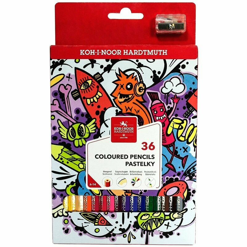 Карандаши цветные Koh-i-Noor, шестигранные, толщина грифеля 3 мм, набор 36 цветов+точилка
