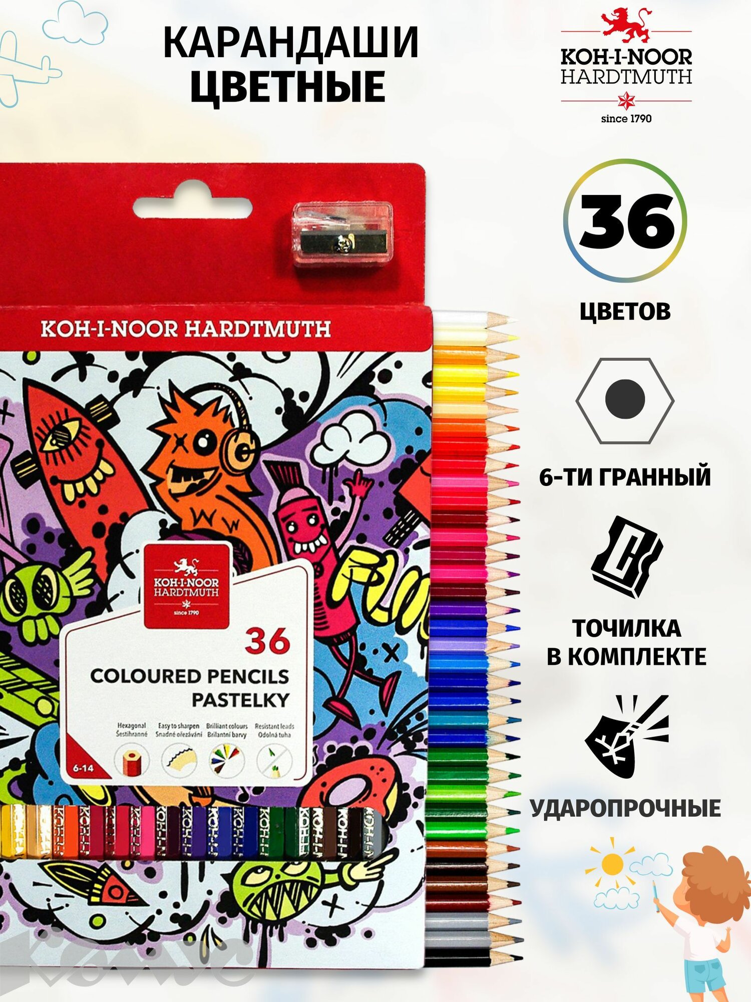 10 цен на Карандаши цветные Koh-i-Noor, шестигранные, толщина грифеля 3 мм, набор 36 цветов + точилка