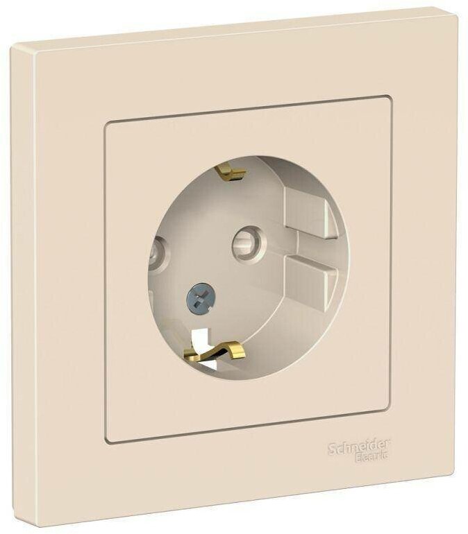 Розетка ATLASDESIGN, скрытый монтаж, с заземлением, со шторками, бежевый | код. ATN000244 | Schneider Electric (5шт. в упак.)