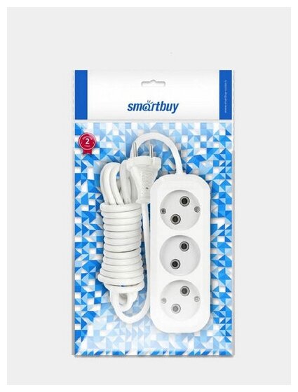 Удлинитель SmartBuy SBE-10-3-02-N/SBE-10-3-03-N/SBE-10-3-05-N, 3 розетки, б/з, 10А / 2200 Вт белый 2 м 3