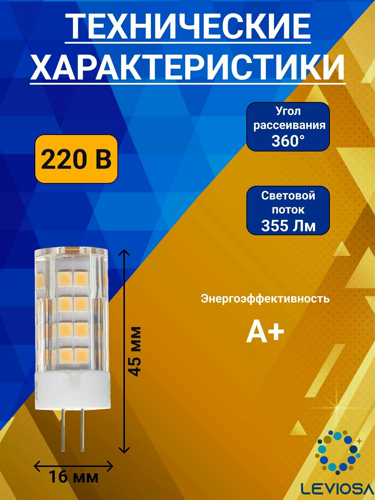 Светодиодные лампы 12 вольт, General, Комплект из 5 шт, Мощность 5 Вт, Цоколь G4, Теплый свет