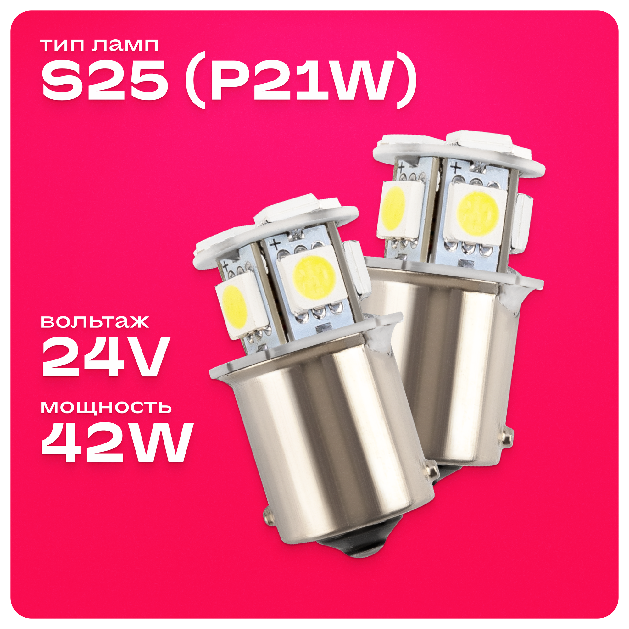 Автолампа диод S25 (P21W) 24V 8 SMD диодов 1-конт BA15s Белая SKYWAY (в комплекте 2 шт.), S08202003 300 ₽