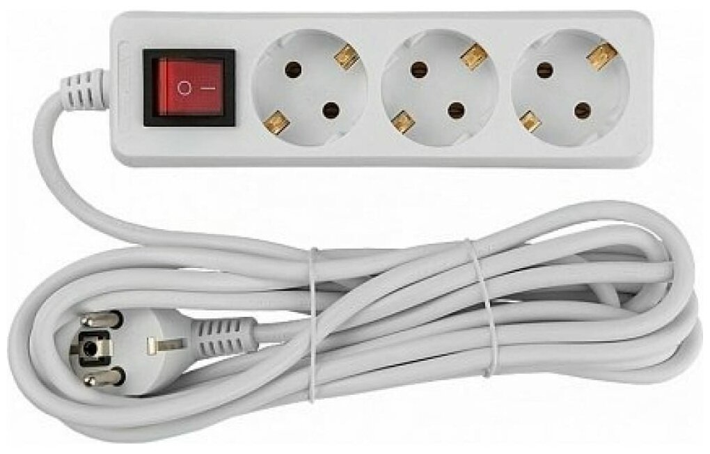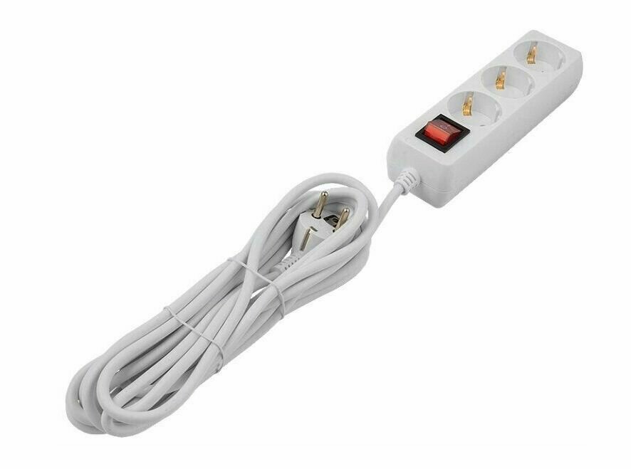 Сетевой фильтр-удлинитель General 3 розетоки с заземлением, 10 метров, выключатель, белый