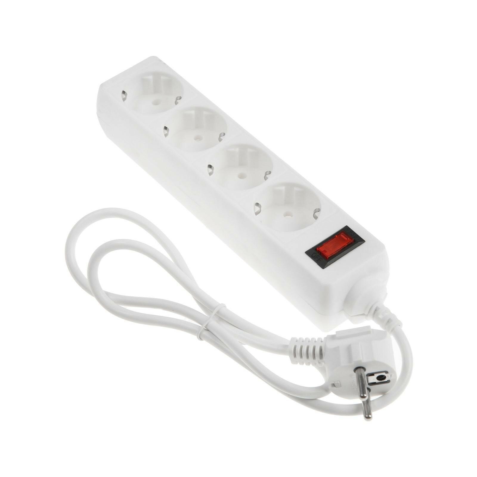 Сетевой фильтр Luazon Lighting, 4 розетки, 1.0 м, 2200 Вт, 3 х 0.75 мм2, 10 A, 220 В, белый
