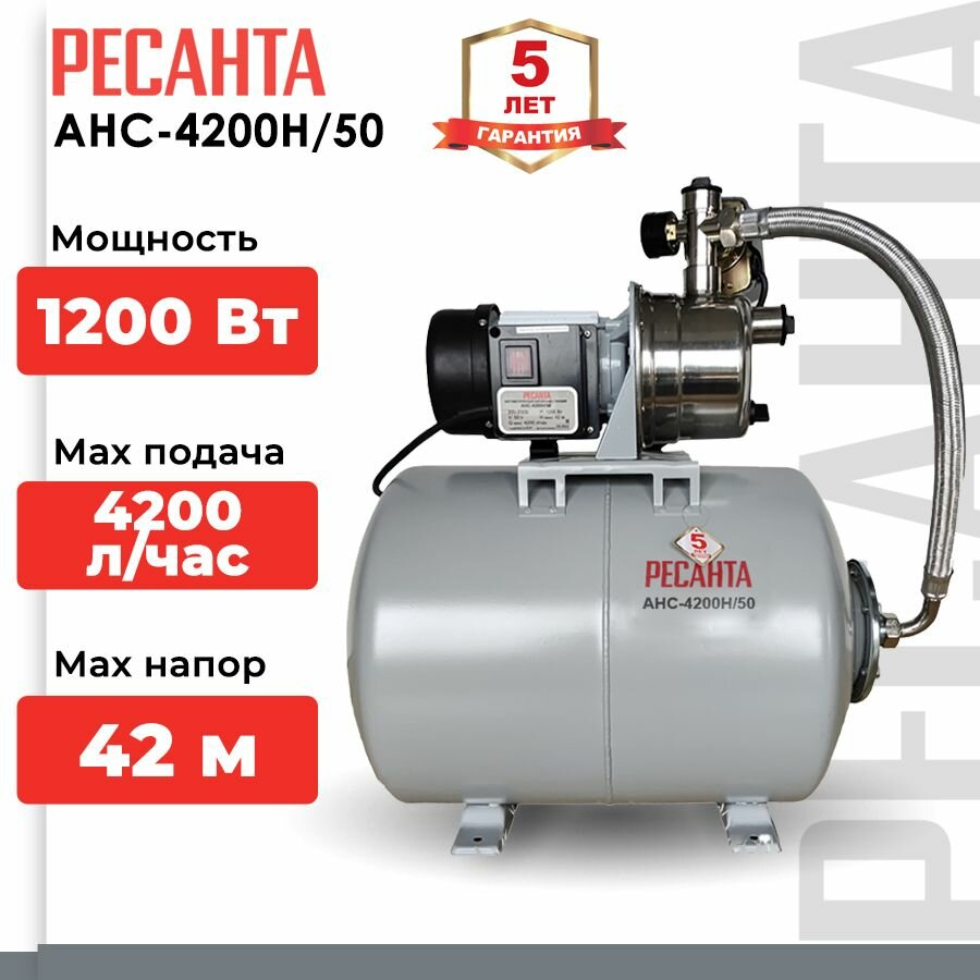 Автономная насосная станция Ресанта АНС-4200Н/50, 1200 Вт, напор – 42 м, 70 л/мин, гидроаккумулятор – 50 л 21 215 ₽