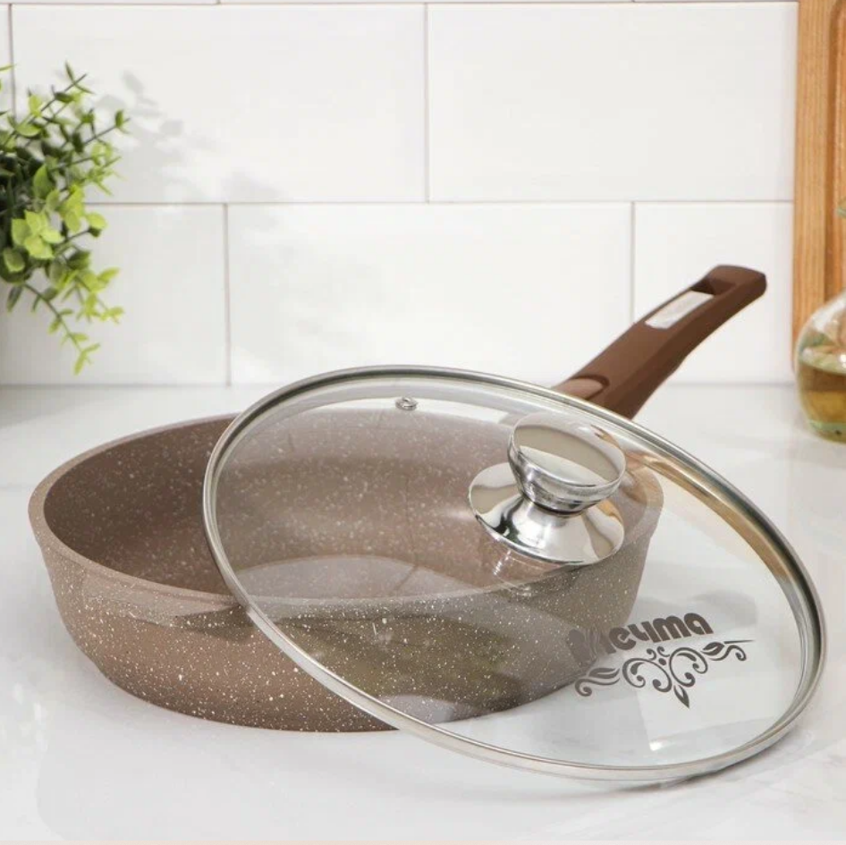 Мечта Сковорода «Гранит Brown», d=28 см, съёмная ручка, стеклянная крышка, антипригарное покрытие, цвет коричневый