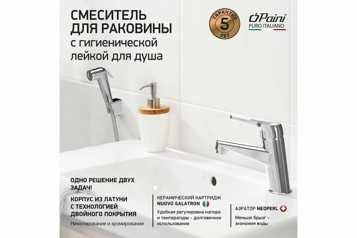 Paini Смеситель Paini Bios 05CR205/574 для раковины, с гигиеническим душем 10 262 ₽