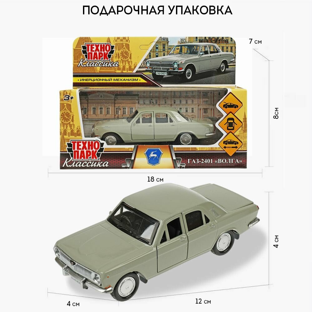 10 цен на Машинка детская ГАЗ-2401 Волга 12 см, Технопарк, серая, металлический корпус, открываются двери и багажник