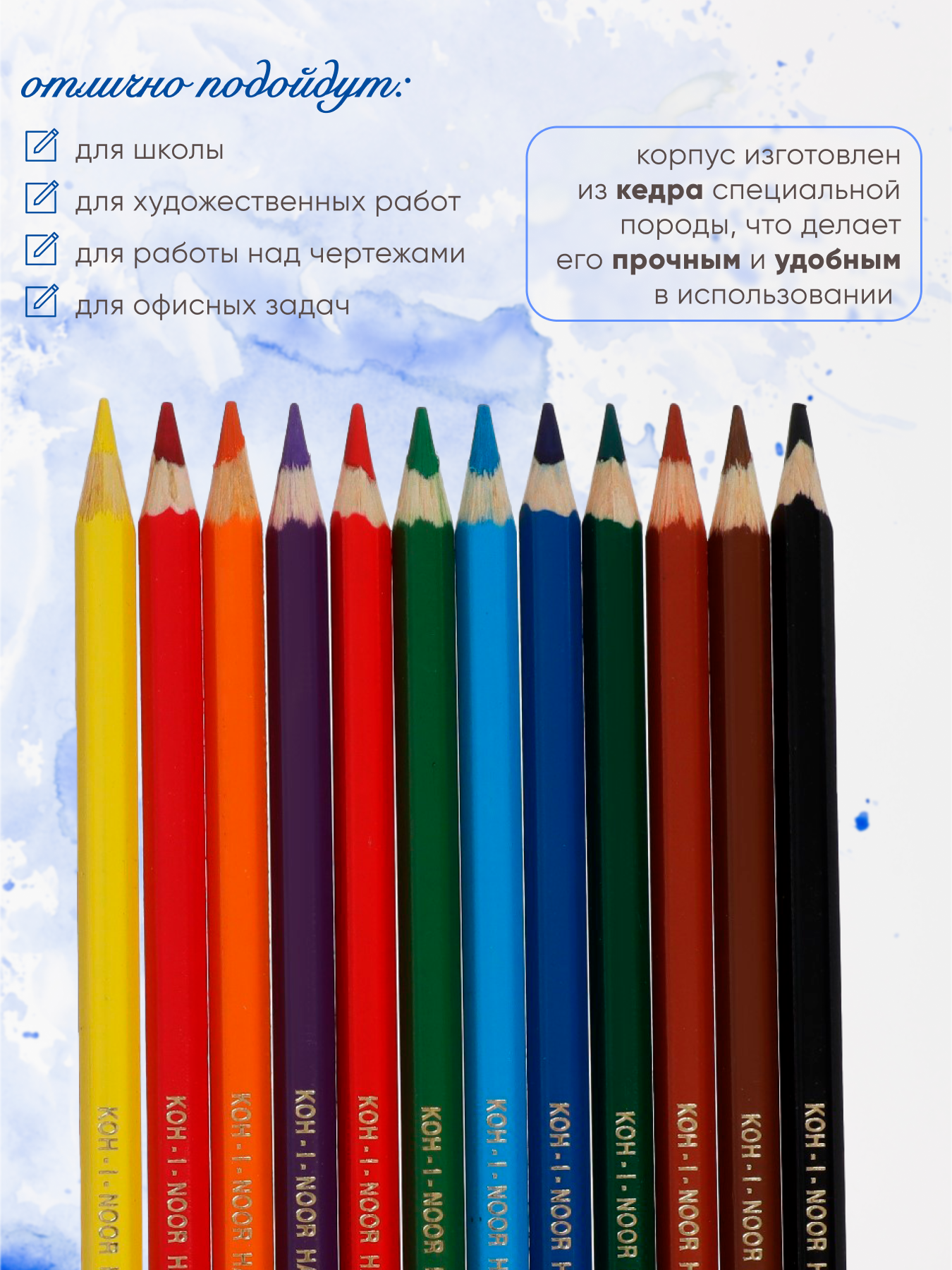 Набор акварельных карандашей "KOH-I-NOOR Hardtmuth" заточенные 12 цв. 3716012001KSRU цветные в картонной коробке