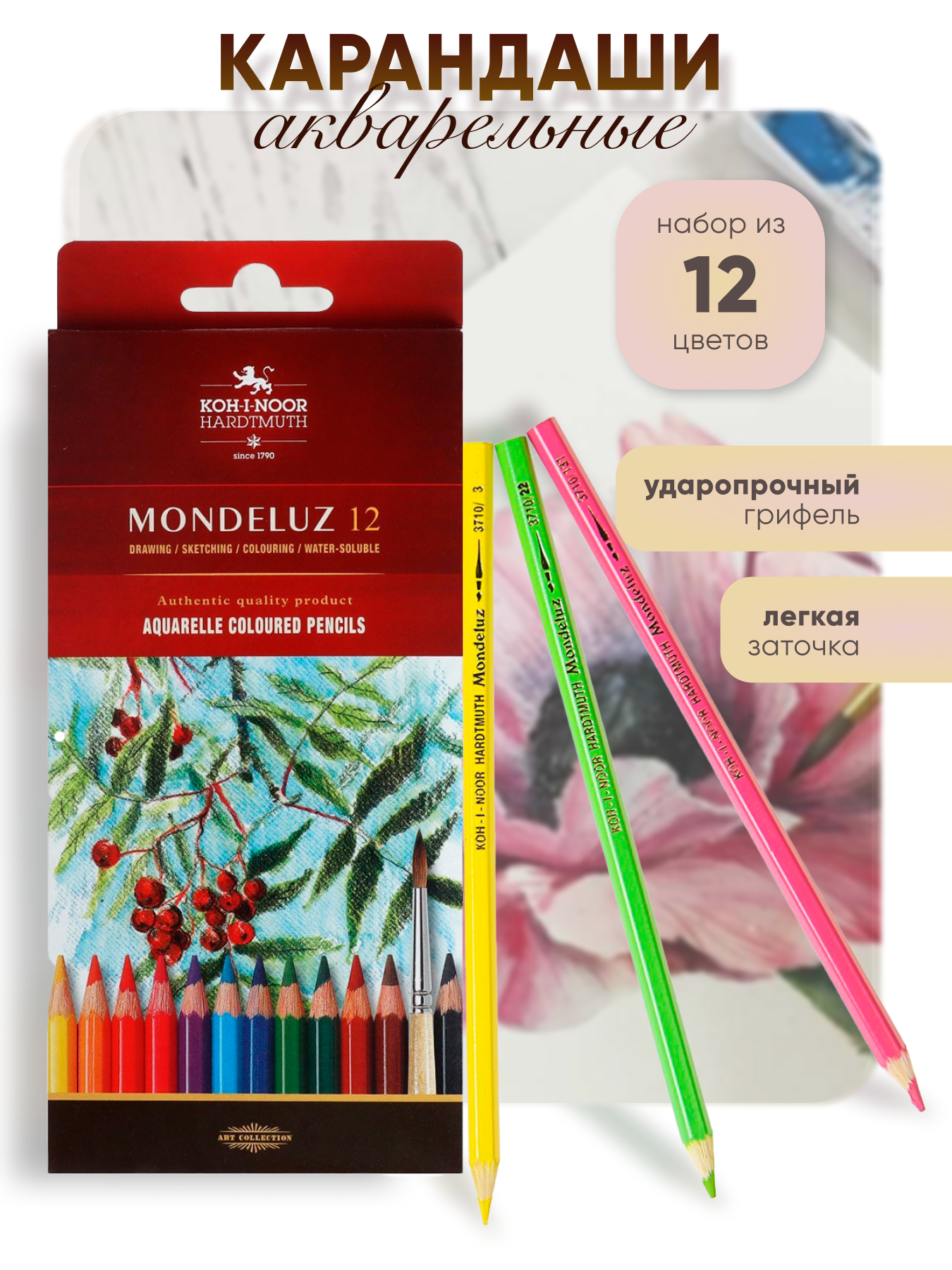 10 цен на Карандаши цветные Koh-i-noor "Mondeluz" акварельные 12 цветов, заточен., картон. уп., европодвес
