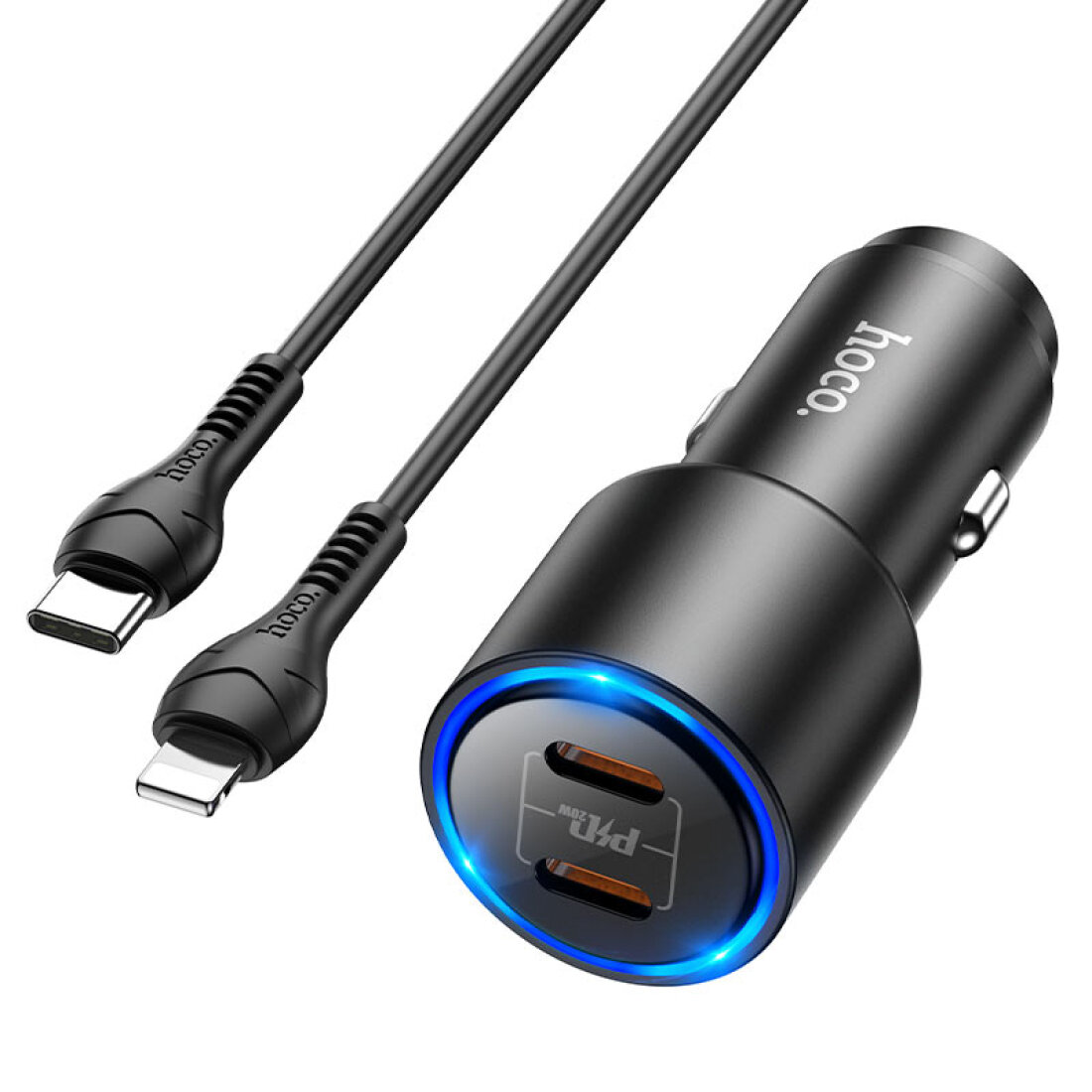 Отзывы на Автомобильное зарядное устройство, 2 PD QC3.0 40W (NZ3), HOCO, кабель Type-C to Lightning, черный