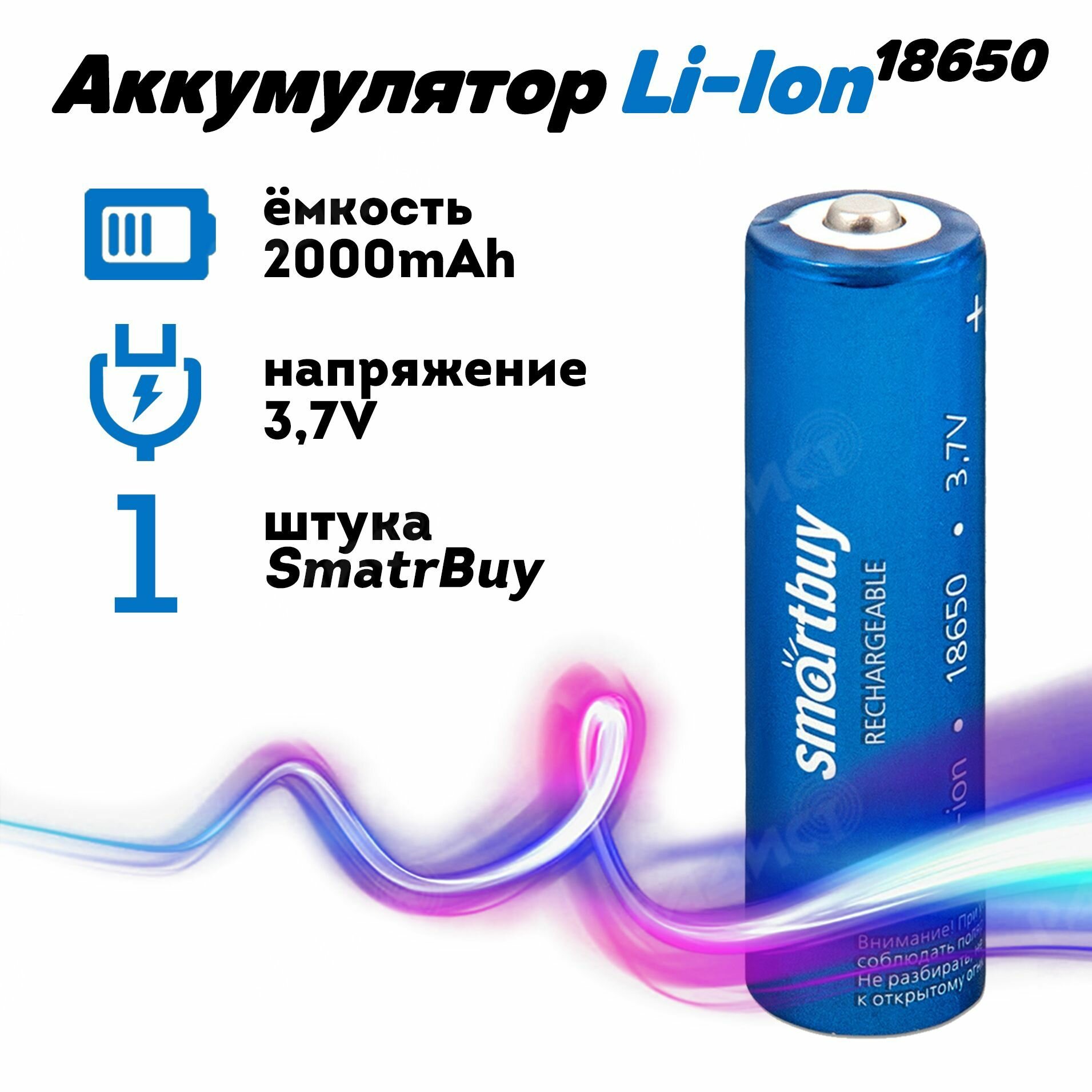 Аккумулятор SmartBuy 18650 3,7В 2000мАч без защиты