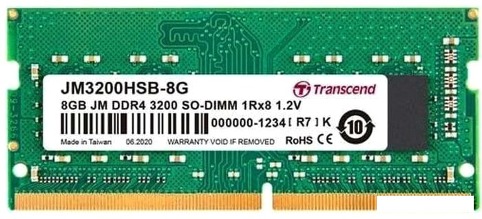 Оперативная память для компьютера 16Gb (1x16Gb) PC4-25600 3200MHz DDR4 SO-DIMM CL22 Transcend JM3200HSB-16G (JM3200HSB-16G) информация: