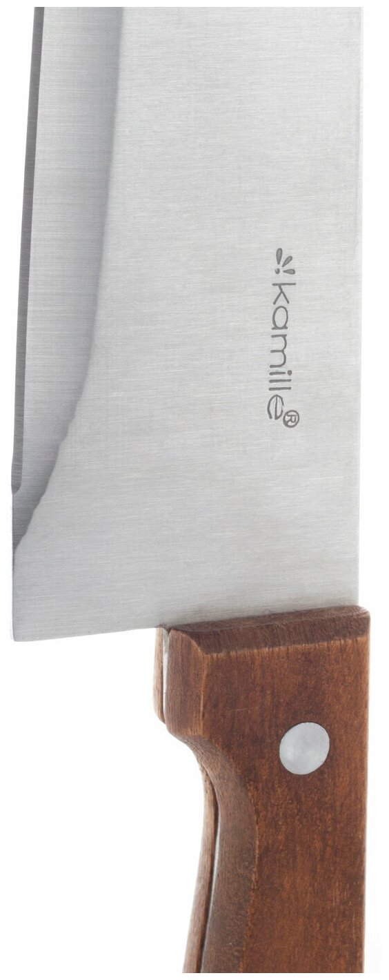Отзывы на Нож кухонный поварской Kamille KM 5306 из нержавеющей стали с деревянной ручкой (20 см. / серебристый)