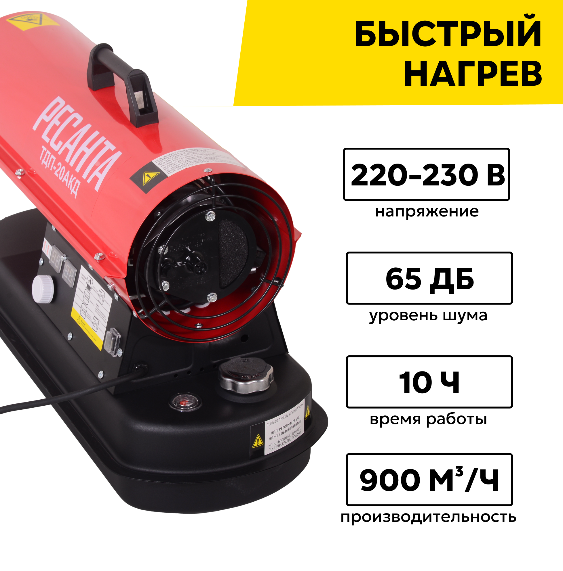 10 цен на Тепловая дизельная пушка ТДП-20АКД Ресанта, 20кВт, площадь обогрева до 200м2